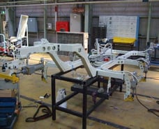 複数のパネルをセットしスポット溶接をして1つのパネルに組み立てる治具です。